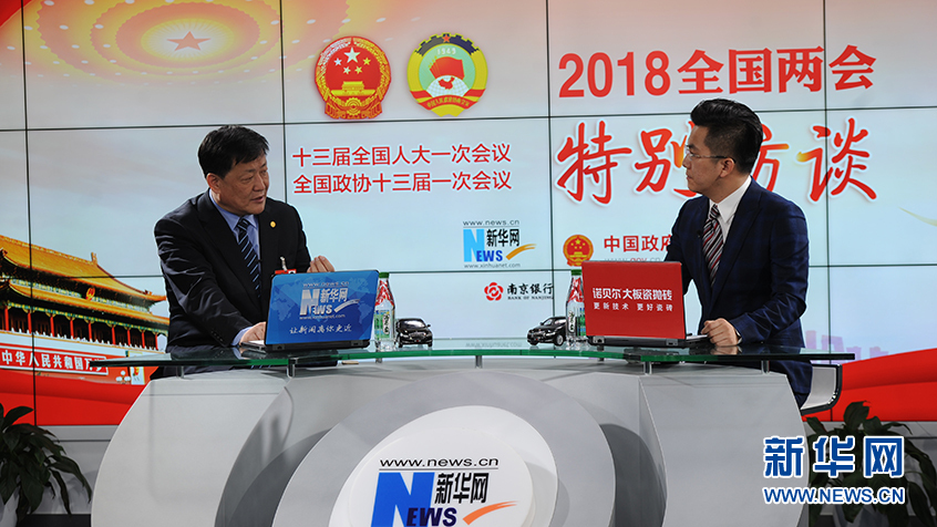 9日,全國政協(xié)委員、遼寧奧克化學(xué)股份有限公司董事長朱建民做客新華網(wǎng)2018全國兩會(huì)特別訪談,與網(wǎng)友在線交流。新華網(wǎng) 郭小天攝
