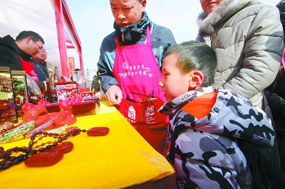 享受了一把精神“大餐”過后,如果也能獲得一些物質(zhì)上的收獲,那就再完美不過了。在慈寧宮花園、慈寧門外廣場,“中華老字號(hào)故宮過大年”熱鬧非凡,來自山東、北京、天津、山西等10個(gè)省市以及5家非物質(zhì)文化遺產(chǎn)傳承人,共計(jì)150家單位參加此次活動(dòng)。