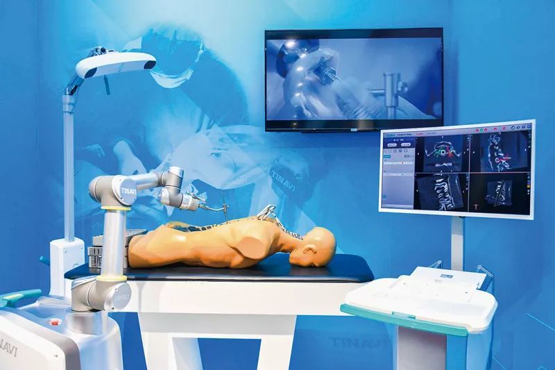 2018年11月22日, 在“偉大的變革——慶祝改革開(kāi)放40周年大型展覽”上,第三代國(guó)產(chǎn)骨科手術(shù)機(jī)器人“天璣”正在模擬做手術(shù),它是國(guó)際上首個(gè)適應(yīng)癥覆蓋脊柱全節(jié)段和骨盆髖臼手術(shù)的骨科機(jī)器人,性能指標(biāo)達(dá)到國(guó)際領(lǐng)先水平。 麥田/視覺(jué)中國(guó)