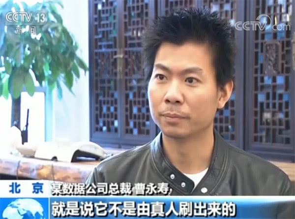 北京某數(shù)據(jù)公司總裁 曹永壽:就是它不是由真人刷出來的,而是由機器(利用軟件)手動刷出來的。