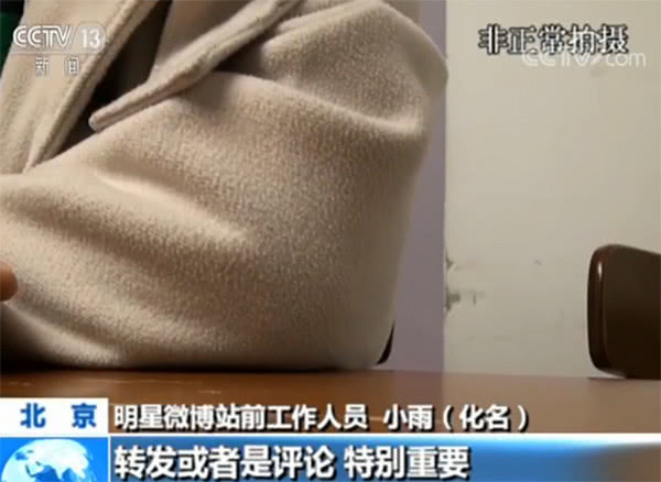北京某數(shù)據(jù)公司總裁 曹永壽:水軍有幾個特征,一個是你會發(fā)現(xiàn)水軍造的內(nèi)容,幾乎都是一致的。第二個是很多水軍都是在凌晨(上線),你覺得這個事正常嗎?如果一萬個粉絲,每個人注冊了十個白號,每個白號每天發(fā)一百個資訊或信息,那就是十萬乘以一百,一天就能到一千(萬)。其實(真實數(shù)字)只是一萬人。