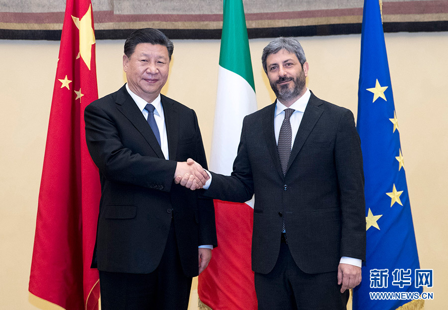 菲科熱烈歡迎習近平主席到訪意大利眾議院。菲科表示,全球化時代,各國相互依賴,全球性問題必須由各國攜手才能應對。中國是意大利重要的合作伙伴。相信習近平主席的訪問將使意中關(guān)系邁向更高水平。意大利眾議院致力于促進意中“一帶一路”框架內(nèi)經(jīng)貿(mào)、文化交流合作,加強在應對氣候變化、聯(lián)合國2030年可持續(xù)發(fā)展議程等全球事務中的溝通和協(xié)調(diào),推動歐盟深化對華合作關(guān)系。