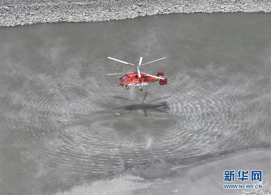 4月2日,救援直升機(jī)在火場附近河道內(nèi)取水,準(zhǔn)備進(jìn)行空中滅火工作。新華社記者 劉坤 攝