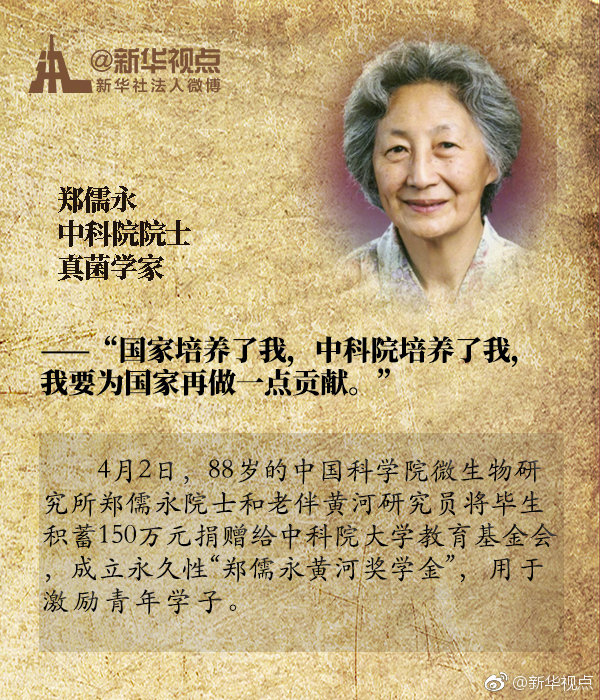 4月2日,中國科學(xué)院微生物研究所鄭儒永院士將畢生積蓄150萬元捐贈(zèng)給中科院大學(xué)教育基金會(huì)。此前,還有很多科研工作者和學(xué)者捐出了他們的大筆積蓄。他們?yōu)槭裁匆@么做?戳圖聽聽他們?cè)趺凑f???? ????