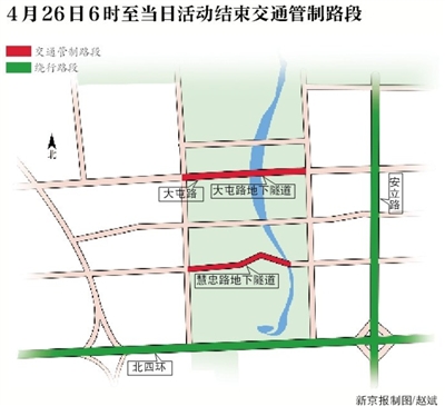 4月26日6時(shí)至當(dāng)日活動(dòng)結(jié)束,大屯路地下隧道、慧忠路地下隧道,除持有“高峰論壇”專用證件的車輛外,禁止其他車輛通行。
