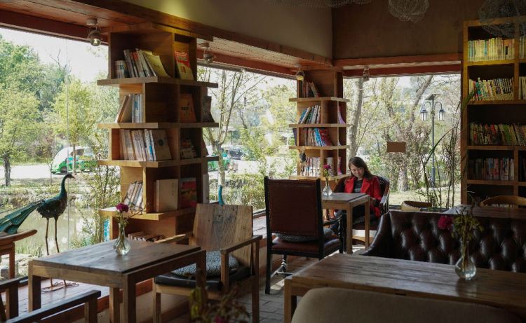 4月12日,一位女士在金嶺村小張灣古建筑群的茶室里休息。湖北省大悟縣金嶺村,5年前還是一個(gè)貧窮落后的偏僻山村,通過整合當(dāng)?shù)毓琶窬淤Y源,發(fā)展鄉(xiāng)村游,如今已經(jīng)成為一個(gè)生態(tài)宜居的美麗鄉(xiāng)村,2018年接待游客超過20萬人次。新華社記者程敏攝