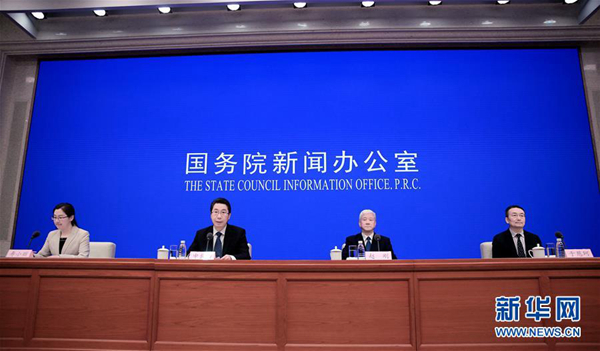 4月28日,國(guó)務(wù)院新聞辦公室在北京舉行新聞發(fā)布會(huì),請(qǐng)國(guó)家知識(shí)產(chǎn)權(quán)局局長(zhǎng)申長(zhǎng)雨、國(guó)家知識(shí)產(chǎn)權(quán)局副局長(zhǎng)趙剛、中宣部版權(quán)管理局局長(zhǎng)于慈珂介紹2018年中國(guó)知識(shí)產(chǎn)權(quán)發(fā)展?fàn)顩r,并答記者問。新華社記者 潘旭 攝