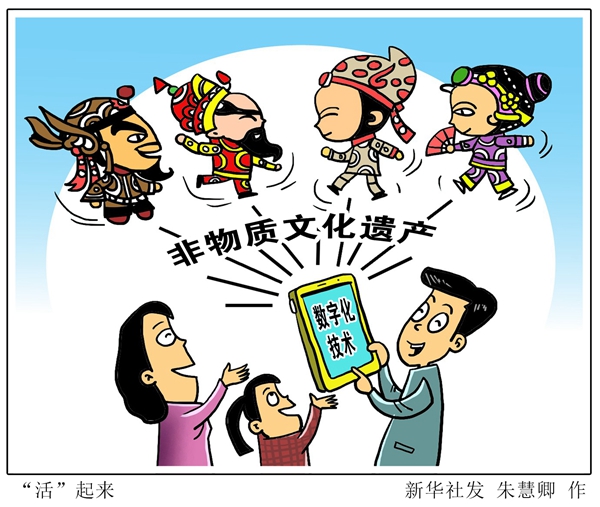 漫畫(huà):“活”起來(lái) 新華社發(fā) 朱慧卿 作