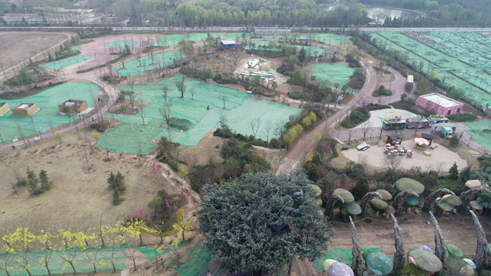 黃河大堤內(nèi)修建的違建項(xiàng)目法莉蘭童話王國(guó)主題樂(lè)園航拍。李鵬 尚昆侖 攝