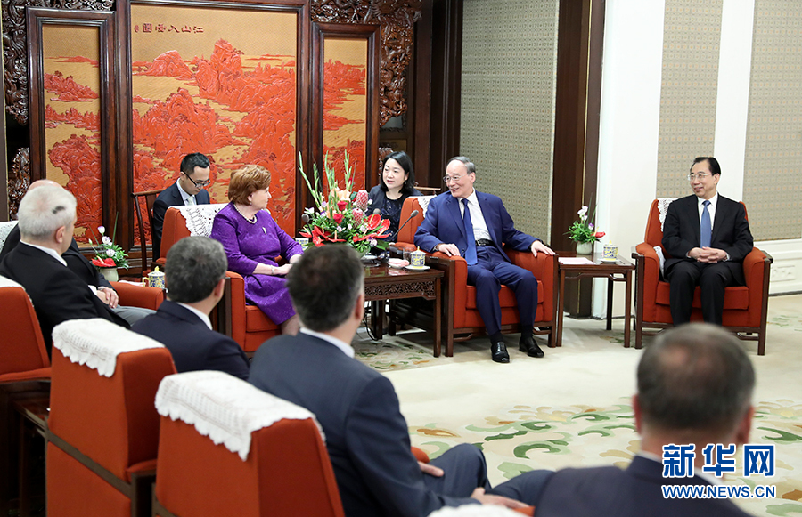 6月25日,國(guó)家副主席王岐山在北京中南海紫光閣集體會(huì)見出席巴庫(kù)國(guó)際論壇北京高級(jí)別會(huì)議的外方代表。 新華社記者 丁海濤 攝