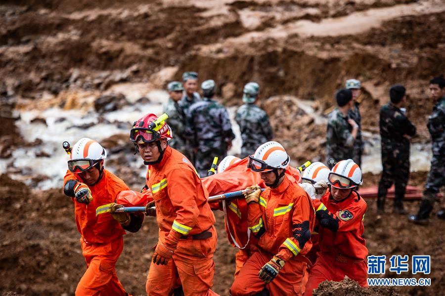 7月24日,救援人員從山體滑坡現(xiàn)場運出遇難者遺體。新華社記者 陶亮 攝