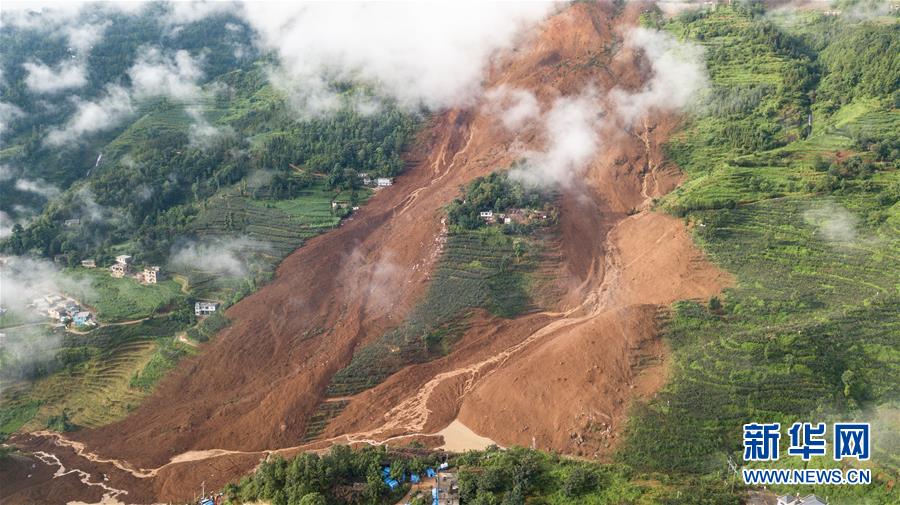 這是水城縣雞場鎮(zhèn)坪地村山體滑坡現(xiàn)場(7月24日無人機拍攝)。新華社記者 陶亮 攝