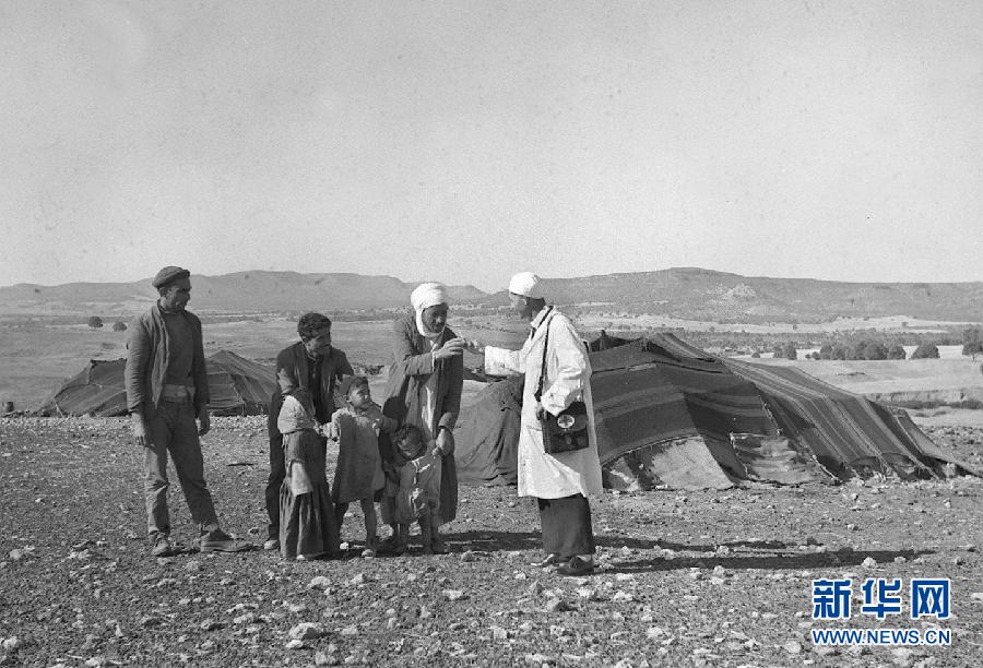 這張1965年的資料照片顯示,中國援阿醫(yī)生(右一)在阿爾及利亞賽伊達省為牧民診治。新華社發(fā)(王南生 攝)