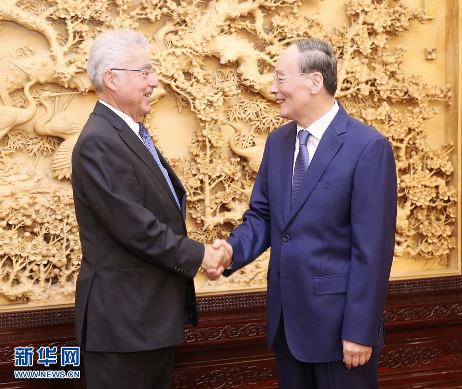 9月11日,國家副主席王岐山在北京中南海會見奧地利中國友好協(xié)會主席、前總統(tǒng)菲舍爾。 新華社記者 姚大偉 攝