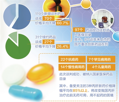 原標(biāo)題:醫(yī)保制度建立以來(lái)最大一輪醫(yī)保藥品目錄調(diào)整談判收官——70個(gè)新藥納入醫(yī)保目錄 價(jià)格平均下降60.7%