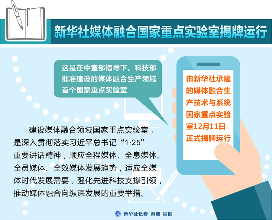 新華社北京12月11日電? 由新華社承建的媒體融合生產(chǎn)技術(shù)與系統(tǒng)國家重點(diǎn)實(shí)驗(yàn)室12月11日正式揭牌運(yùn)行。這是在中宣部指導(dǎo)下、科技部批準(zhǔn)建設(shè)的媒體融合生產(chǎn)領(lǐng)域首個(gè)國家重點(diǎn)實(shí)驗(yàn)室。建設(shè)媒體融合領(lǐng)域國家重點(diǎn)實(shí)驗(yàn)室,是深入貫徹落實(shí)習(xí)近平總書記“1·25”重要講話精神,順應(yīng)全程媒體、全息媒體、全員媒體、全效媒體發(fā)展趨勢(shì),適應(yīng)全媒體時(shí)代發(fā)展需要,強(qiáng)化先進(jìn)科技支撐引領(lǐng),推動(dòng)媒體融合向縱深發(fā)展的重要舉措。