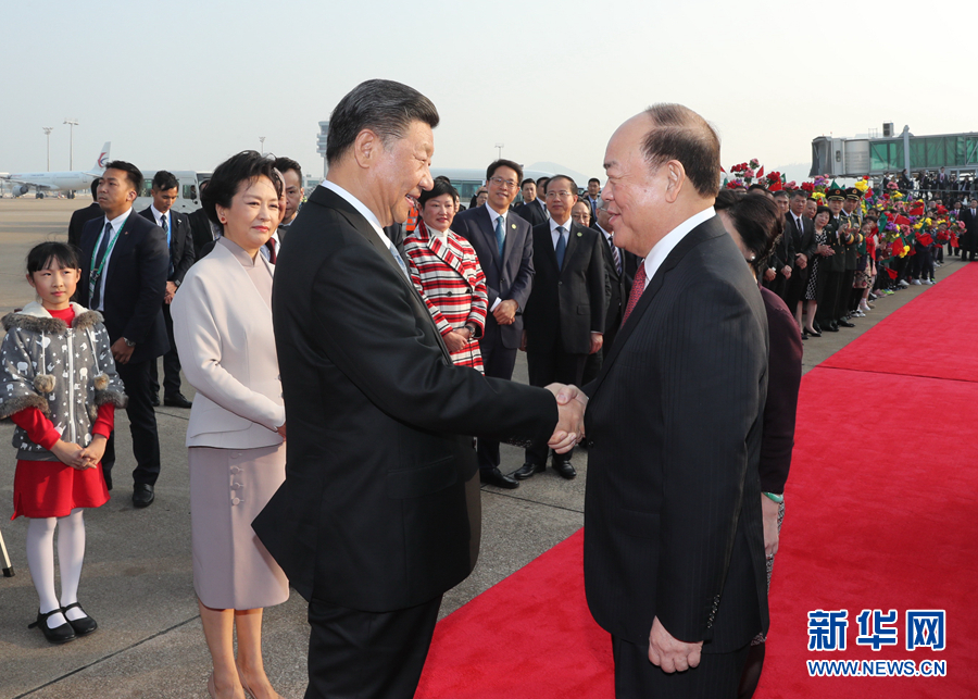 12月20日,中共中央總書記、國家主席、中央軍委主席習近平圓滿結(jié)束在澳門的各項活動,從澳門乘專機返回北京。這是歡送儀式上,習近平同前來送行的澳門特別行政區(qū)行政長官賀一誠握手。 新華社記者 鞠鵬 攝