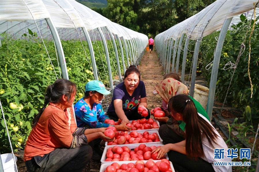 趙會(huì)杰在蔬菜大棚了解西紅柿的生長情況(資料照片)。 新華社發(fā)(李國志 攝)