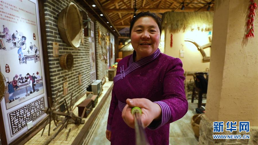 趙會(huì)杰在村里的民俗博物館自拍錄視頻,展示保留下來的老物件。 新華社發(fā)(視頻截圖)