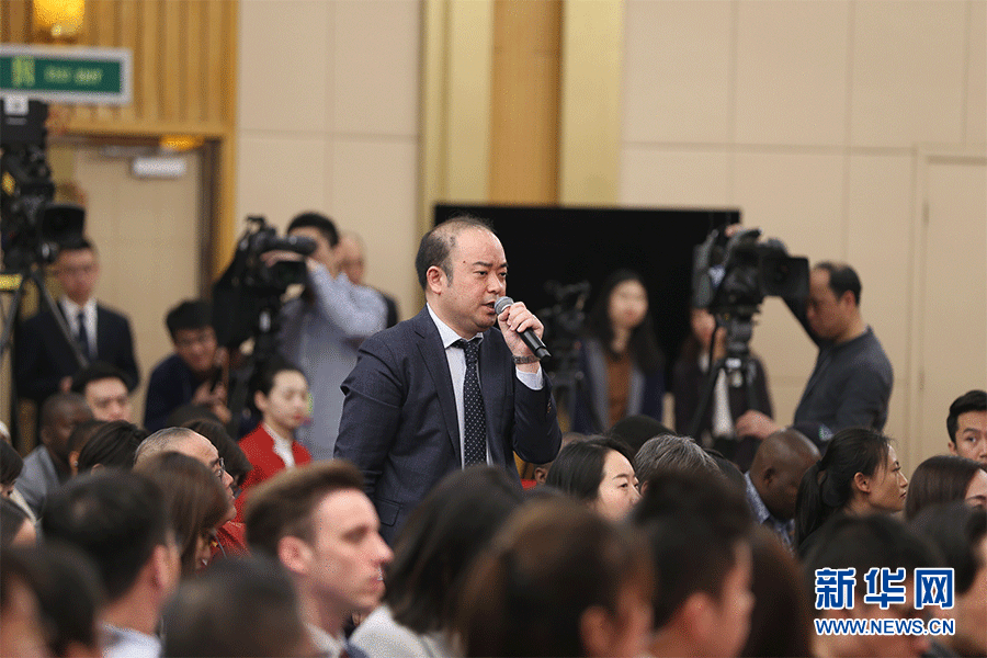 十三屆全國(guó)人大二次會(huì)議新聞中心3月9日(星期六)10時(shí)30分在梅地亞中心新聞發(fā)布廳舉行記者會(huì),邀請(qǐng)商務(wù)部部長(zhǎng)鐘山、副部長(zhǎng)兼國(guó)際貿(mào)易談判副代表王受文、副部長(zhǎng)錢克明就“促進(jìn)形成強(qiáng)大國(guó)內(nèi)市場(chǎng) 推動(dòng)全方位對(duì)外開(kāi)放”相關(guān)問(wèn)題回答中外記者提問(wèn)。圖為日本經(jīng)濟(jì)新聞?dòng)浾咛釂?wèn)。新華網(wǎng)/中國(guó)政府網(wǎng) 劉廈 攝
