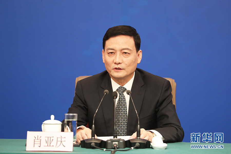 十三屆全國人大二次會議新聞中心3月9日(星期六)15時在梅地亞中心新聞發(fā)布廳舉行記者會,邀請國務院國資委主任肖亞慶,副主任翁杰明,秘書長、新聞發(fā)言人彭華崗就“國有企業(yè)改革發(fā)展”相關問題回答中外記者提問。圖為肖亞慶回答記者提問。新華網(wǎng)/中國政府網(wǎng) 陳杰 攝