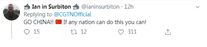 “如果有任何一個(gè)國(guó)家可以做到,那就是你們了!中國(guó)加油?。 ?/p>
