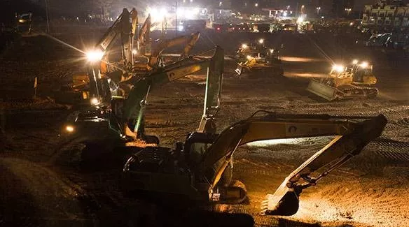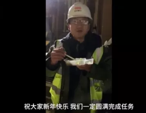 昨日除夕,上百臺(tái)機(jī)械在施工現(xiàn)場(chǎng)同時(shí)開挖,工人們連晚飯也只是站在馬路邊上草草解決,又繼續(xù)投入戰(zhàn)斗。