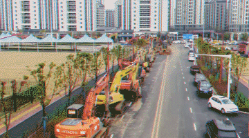 上百臺(tái)挖掘機(jī)、推土機(jī)等施工機(jī)械