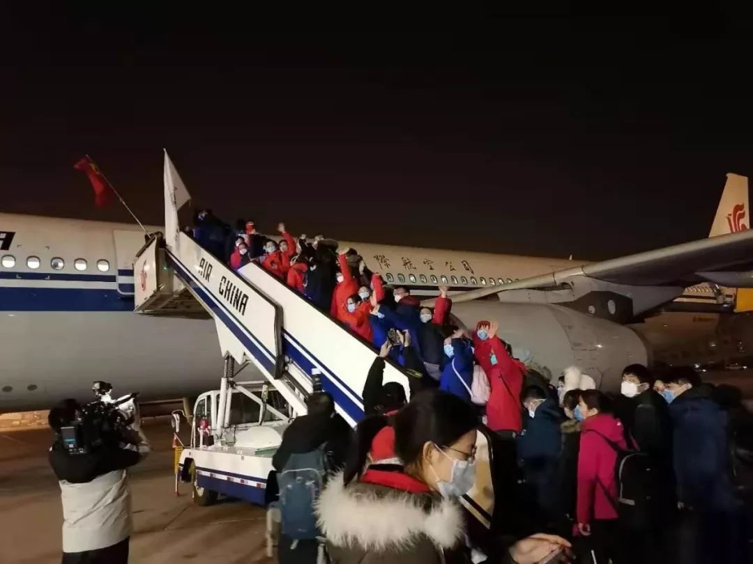 (北京市屬醫(yī)院醫(yī)療隊(duì)登機(jī) 北京市醫(yī)院管理中心供圖)