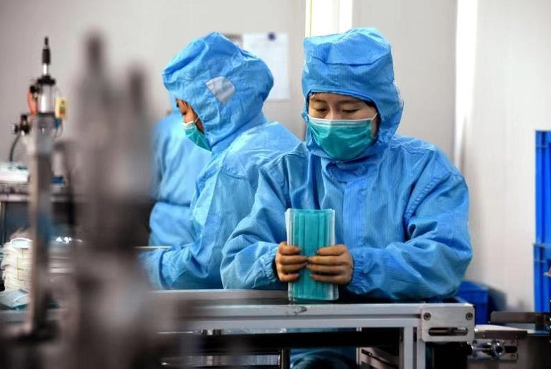 1月28日,工人在河北定州市一家口罩生產(chǎn)企業(yè)車間工作。連日來,河北省定州市口罩生產(chǎn)企業(yè)召回員工加班加點生產(chǎn)口罩,助力防控新型冠狀病毒感染的肺炎疫情。