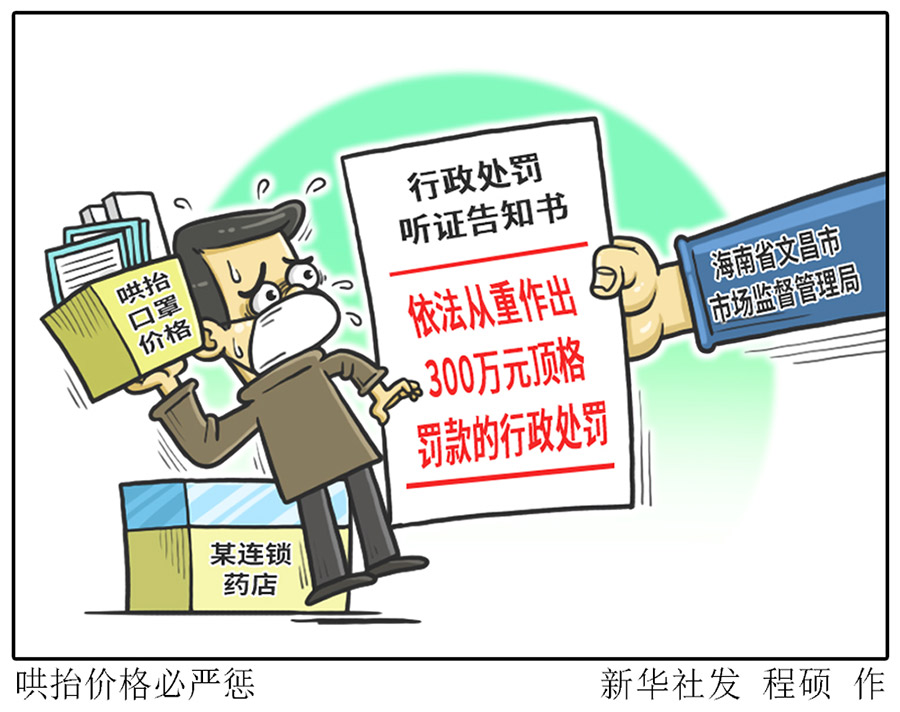 新華社海口2月6日電(記者吳茂輝)記者6日從海南省市場監(jiān)督管理局獲悉,近日,海南一九堂藥品連鎖經(jīng)營有限公司因哄抬價格,被文昌市市場監(jiān)督管理局下達《行政處罰聽證告知書》。根據(jù)這份告知書,這家公司將被罰300萬元。
