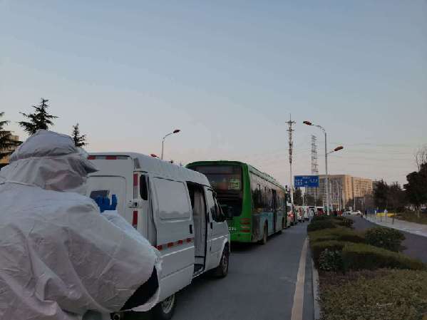 各個(gè)街道轉(zhuǎn)運(yùn)病人的車(chē)輛排成長(zhǎng)龍