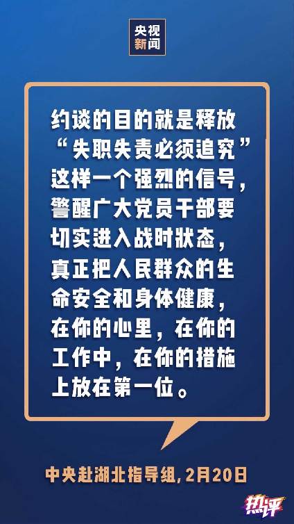 四是直接督促檢查一線黨政干部在疫情防控中的作為。既要進(jìn)行指導(dǎo),也要加強(qiáng)督查——這是習(xí)近平總書記對(duì)中央指導(dǎo)組提出的要求。連日來(lái),中央指導(dǎo)組深入一線督查、督辦,發(fā)現(xiàn)問(wèn)題后對(duì)有關(guān)市區(qū)負(fù)責(zé)人開展約談并曝光,還深入核查解決群眾反映的突出問(wèn)題。之前公眾普遍關(guān)注的黃岡“一問(wèn)三不知”干部被問(wèn)責(zé)、武漢市區(qū)領(lǐng)導(dǎo)因轉(zhuǎn)運(yùn)病人不力被約談等,都在此列。