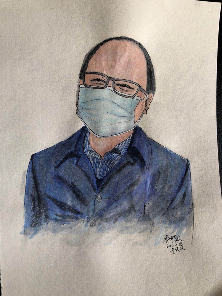剛開始就是正常的寫稿拍視頻,隨著時間的推移,就特別想畫畫。這個城市里充滿了觸動心靈的瞬間,可能是一個笑臉,可能是一個手勢。我總覺得光是寫下來、拍下來,還遠遠不夠,只有把它畫下來,才真正能把我那一刻的感動也一起收藏起來。當時武漢根本買不到顏料,我請同事幫忙從北京帶過來,2月16號的時候開始畫。第一個想到的就是采訪過的醫(yī)護人員的笑臉。因為大家都崩得很緊,好多醫(yī)護人員采訪中說著說著就哭了。雖然對采訪來說可能是件好事,但我總感覺很愧疚,覺得為個采訪讓人又難過一次。后來就形成一個習慣,每次我都要問一個問題:今天有沒有開心的事呀?或者說:咱換個話題,說點高興的!他們給了我各種各樣的答案,但是不管是為什么高興,那一刻他們的笑容都特別燦爛特別美好。所以我把他們的笑畫了下來,希望更多的人能看到,能從中汲取力量。