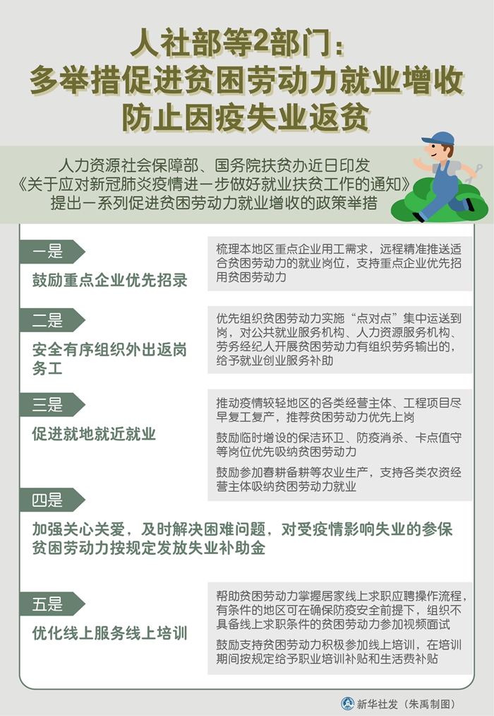 新華社北京2月25日電(記者王優(yōu)玲)人力資源社會(huì)保障部、國(guó)務(wù)院扶貧辦近日印發(fā)《關(guān)于應(yīng)對(duì)新冠肺炎疫情進(jìn)一步做好就業(yè)扶貧工作的通知》,提出一系列促進(jìn)貧困勞動(dòng)力就業(yè)增收的政策舉措。