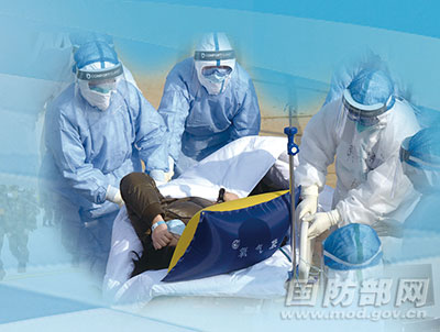 綜合科第一次接收病人正值晚上??吹揭晃?0多歲的老人行動不便,56歲的軍醫(yī)毛青跨上救護車,一把抱起老人輕輕放在擔架上。