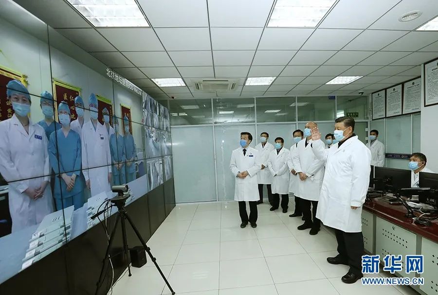 2月10日,習(xí)近平來(lái)到首都醫(yī)科大學(xué)附屬北京地壇醫(yī)院門(mén)診樓一層運(yùn)行監(jiān)控中心,通過(guò)監(jiān)控畫(huà)面察看患者住院診療情況,并視頻連線正在病房值班的醫(yī)務(wù)人員。