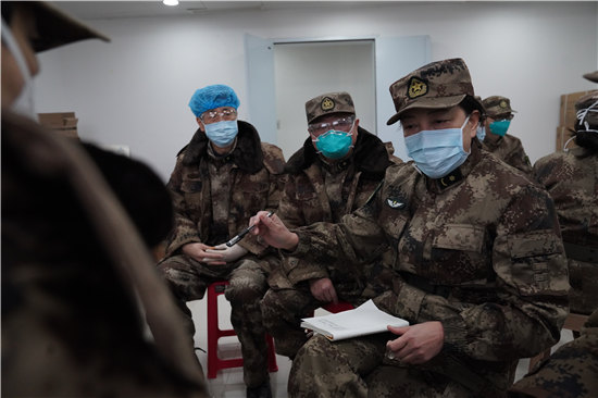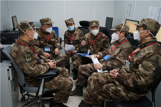 專家黨員突擊隊在研究會診疑難問題,左起曹國強、李琦、陳萍、毛青、任小寶、楊仕明。張旭航 攝