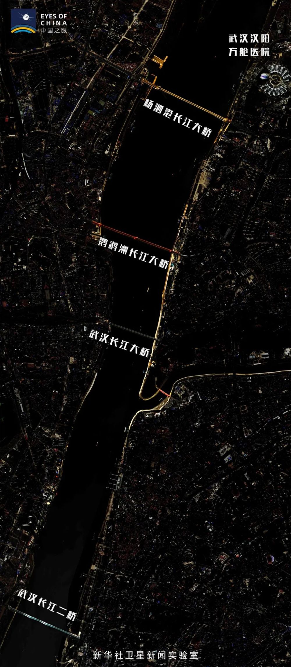 武漢多座長(zhǎng)江大橋衛(wèi)星燈光合成效果圖