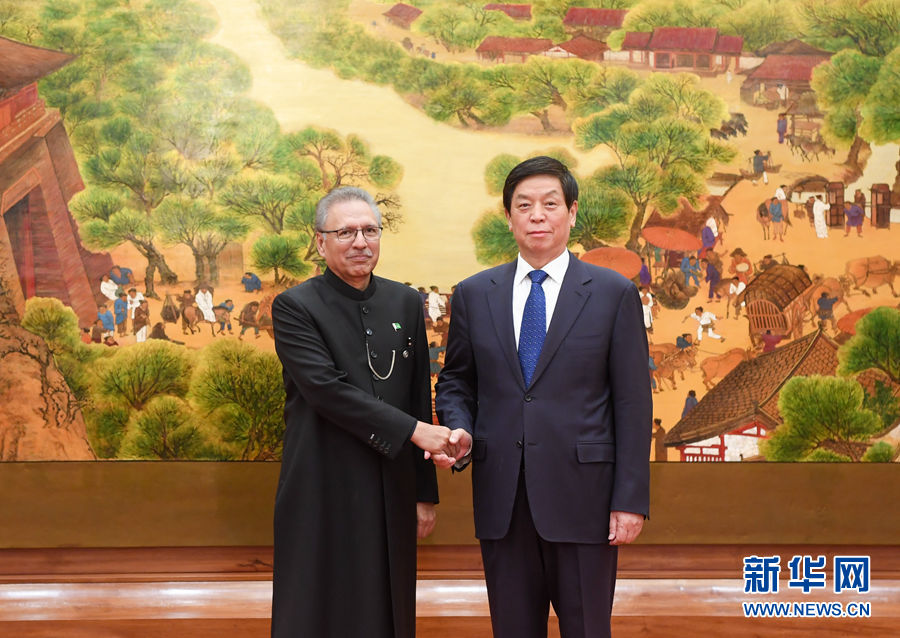 新華社北京3月17日電(記者楊依軍)全國(guó)人大常委會(huì)委員長(zhǎng)栗戰(zhàn)書(shū)17日在人民大會(huì)堂會(huì)見(jiàn)巴基斯坦總統(tǒng)阿爾維。