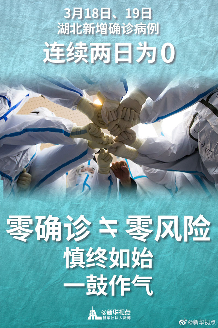 3月18日、19日,湖北連續(xù)兩日無新增確診病例,這是一個(gè)令人鼓舞的信號(hào)。 同時(shí)也要清醒看到國(guó)內(nèi)外疫情形勢(shì)的復(fù)雜性和嚴(yán)峻性。零確診不等于零風(fēng)險(xiǎn),防疫容不得半點(diǎn)松懈。面對(duì)出現(xiàn)的新問題、新挑戰(zhàn),因時(shí)因勢(shì)精準(zhǔn)施策,決不能讓向好形勢(shì)發(fā)生逆轉(zhuǎn)。