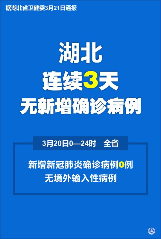 新華社武漢3月21日電(記者侯文坤)據(jù)湖北省衛(wèi)健委21日通報(bào),3月20日0—24時,全省新增新冠肺炎確診病例0例,無境外輸入性病例。