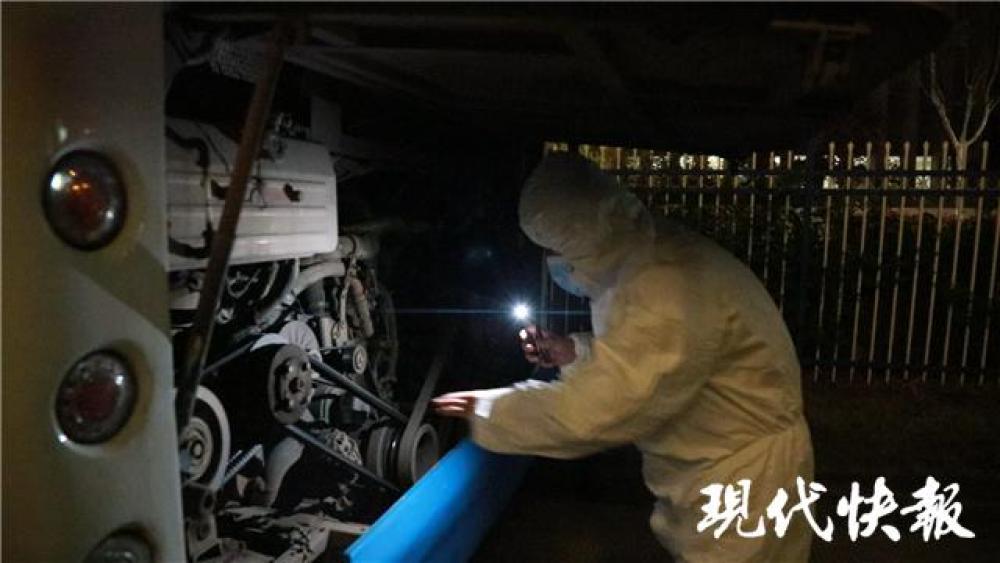 然而,陳強想起剛來的半個月,與現(xiàn)在的氛圍完全不同?!耙f我不害怕,那肯定不現(xiàn)實。”陳強告訴現(xiàn)代快報記者,剛開始的半個月,他整個人都處于緊繃的狀態(tài),防護服裹得緊緊的,也不敢與車上的醫(yī)護人員有過多的交流?!坝幸淮挝医恿?0名醫(yī)護人員,座位全部坐滿了,當時緊張極了?!彪S著疫情的好轉(zhuǎn),陳強也慢慢放下心來,他與醫(yī)護人員熟悉起來,之間也多了不少互動。