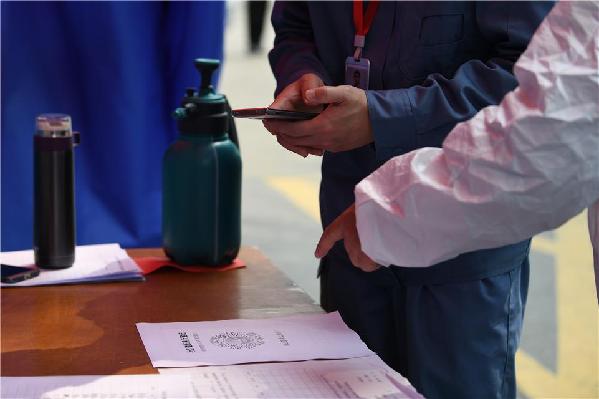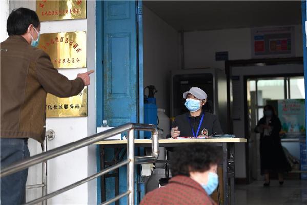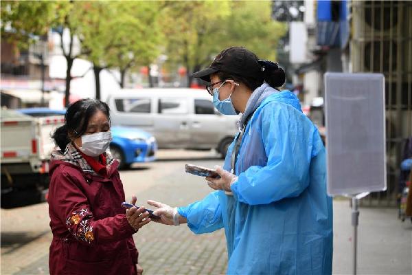 3月23日,武漢市青山區(qū)青山鎮(zhèn)街石化社區(qū),居民通過掃綠碼進入小區(qū)。