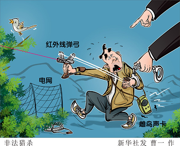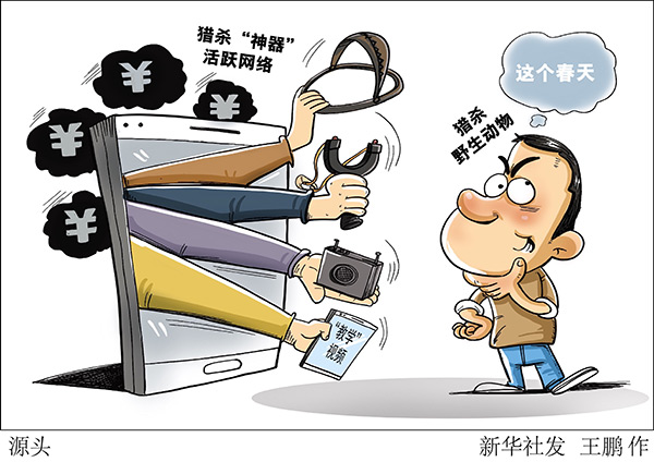 一個彈弓配上精準(zhǔn)的紅外線瞄準(zhǔn)儀,保證“百發(fā)百中”;一張聲卡匯集數(shù)十種雌鳥聲,2000米外能遙控指揮;精心設(shè)下的捕獵夾,等著野生動物來“斷腿”……嚴(yán)寒過后,萬物復(fù)蘇的春天悄然來到。然而,對于野生動物們來說,等待它們的除了和風(fēng)細雨,還有一些人精心設(shè)下的“天羅地網(wǎng)”。