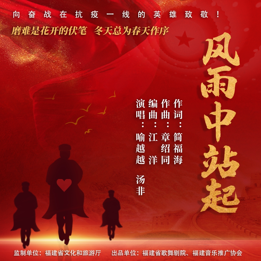 近日,由簡福海作詞,著名作曲家章紹同作曲,知名音樂制作人江洋編曲,著名青年歌唱家喻越越、著名青年歌唱家湯非聯(lián)袂獻聲的公益歌曲《風雨中站起》正式上線。該歌曲由福建省文化和旅游廳監(jiān)制,福建省歌舞劇院和福建音樂推廣協(xié)會出品。