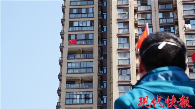 記者在現(xiàn)場注意到,北京協(xié)和醫(yī)院醫(yī)療隊駐地酒店旁的居民樓里,有居民在窗邊掛上了五星紅旗歡送醫(yī)療隊,醫(yī)療隊隊員們也向他們揮動著手里的紅旗致謝。