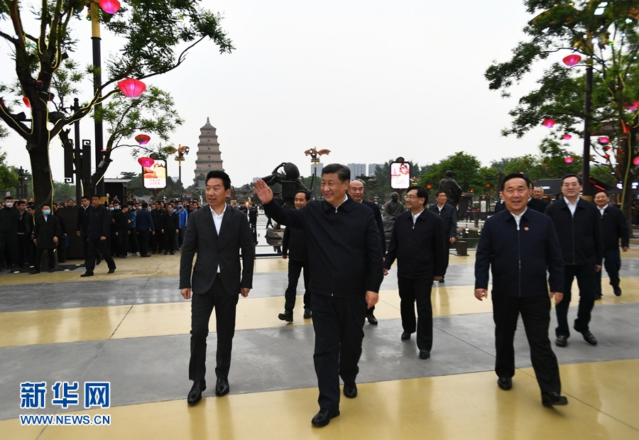 4月20日至23日,中共中央總書(shū)記、國(guó)家主席、中央軍委主席習(xí)近平在陜西考察。這是4月22日,習(xí)近平在西安大唐不夜城步行街考察時(shí),向游客揮手致意。 新華社記者 謝環(huán)馳 攝