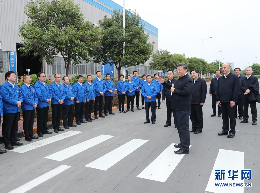 4月20日至23日,中共中央總書(shū)記、國(guó)家主席、中央軍委主席習(xí)近平在陜西考察。這是4月22日,習(xí)近平在陜西汽車(chē)控股集團(tuán)有限公司考察時(shí),同企業(yè)職工親切交流。 新華社記者 鞠鵬 攝