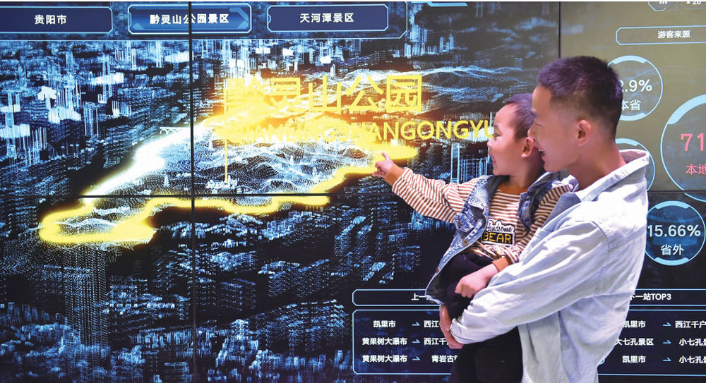 2019年5月26日,在貴陽舉行的2019中國國際大數(shù)據(jù)產(chǎn)業(yè)博覽會上,一對父子在參觀(歐東衢/攝)